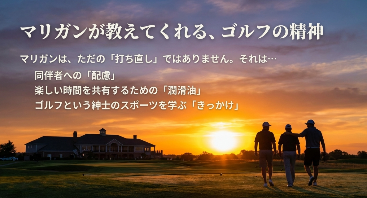 ここで大事なのは、由来がどれであれ、背景にあるのが失敗への寛容さと、遊び心だという点です。 ゴルフは厳格なスポーツだけど、仲間内で楽しく回る文化も強い。 マリガンは、その間をつなぐ慣習として残っているんだと思います。