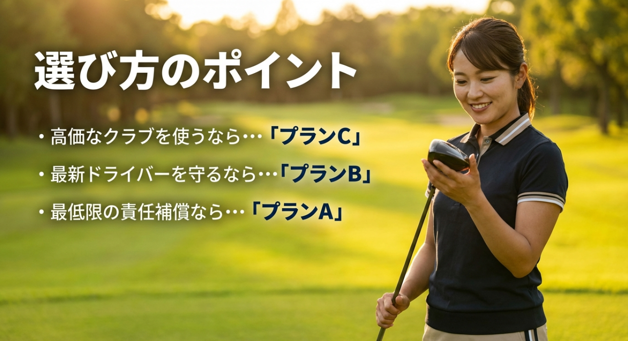 最終的には、あなたが「カートを運転する頻度」「セルフプレー中心か」「同伴者が家族や接待先か」で必要な強度が変わります。 保険は正解が1つじゃないので、ここは無理に断定せず、あなたのプレースタイルに合わせて最適化するのが一番です。