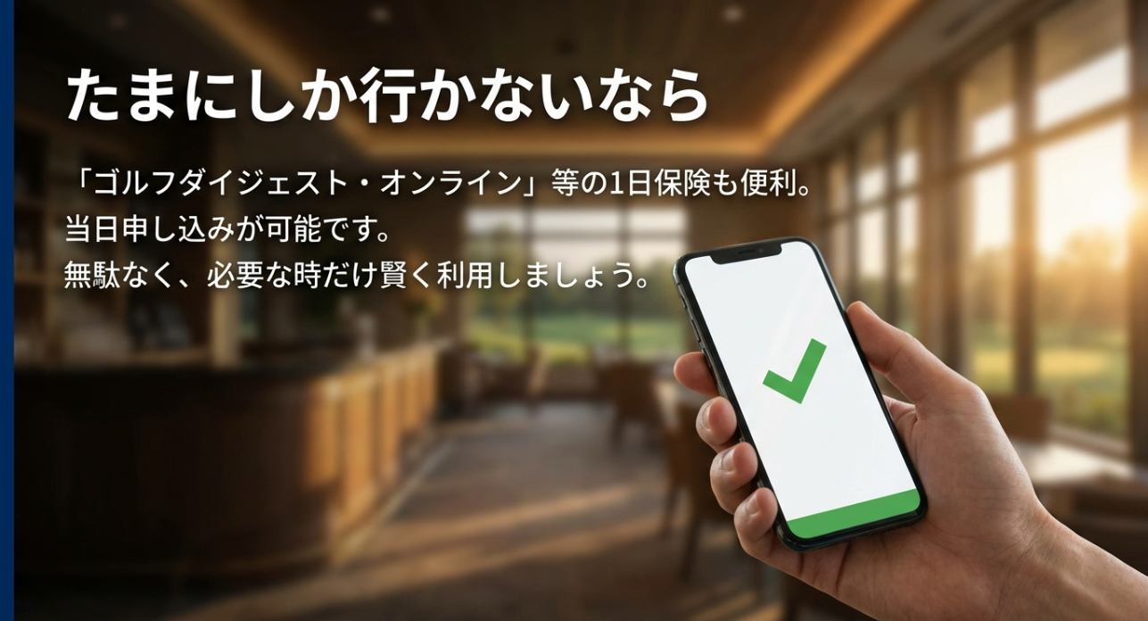「年契約は重い」「たまにしか行かない」なら、1日型のゴルフ保険も比較対象です。 考え方は以下の記事で整理しています。
