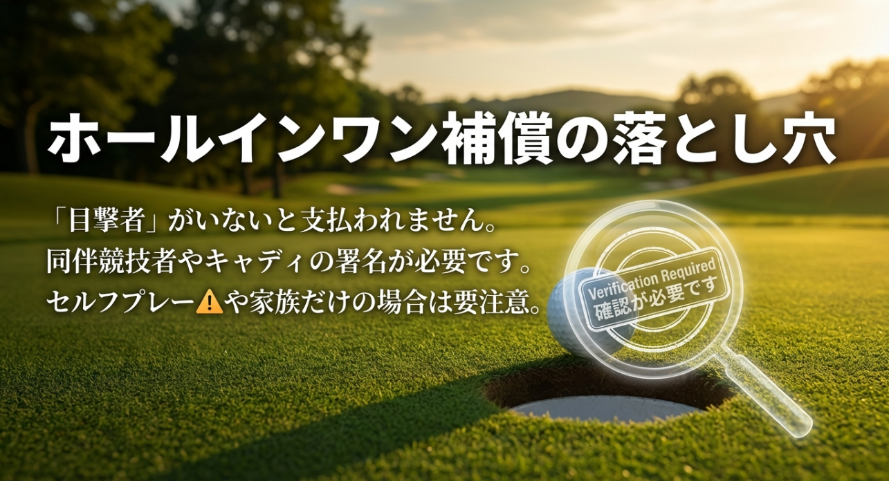 ホールインワン保険は、金額の話よりも条件がキツいのが現実です。 ここ、気になりますよね。 特にセルフプレーが主流になってきた今、「同伴者が見てたから大丈夫でしょ」と思っていると、保険金が下りないリスクが出ます。 理由はシンプルで、同伴者って利害関係者と見なされやすいからです。 保険会社側の目線だと、第三者性が弱い=不正が混じる余地がある、と判断されやすいんですよね。