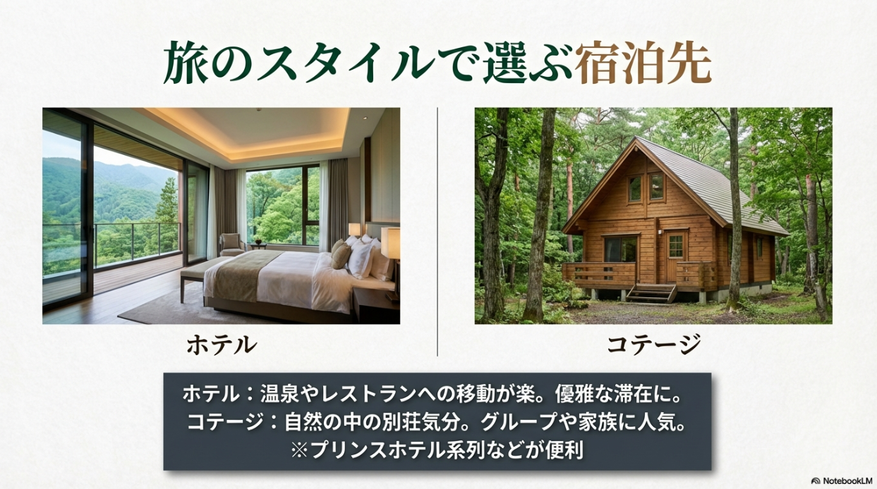 ちなみに軽井沢は、同じ「軽井沢」という言葉でも、プリンスエリア中心で完結させるのか、北軽井沢寄りで自然重視にするのか、ちょっと外して穴場感を狙うのかで、満足度が変わりやすいです。 ここ、気になりますよね。 私はいつも「誰と行くか」と「何を優先するか」から逆算して決めています。