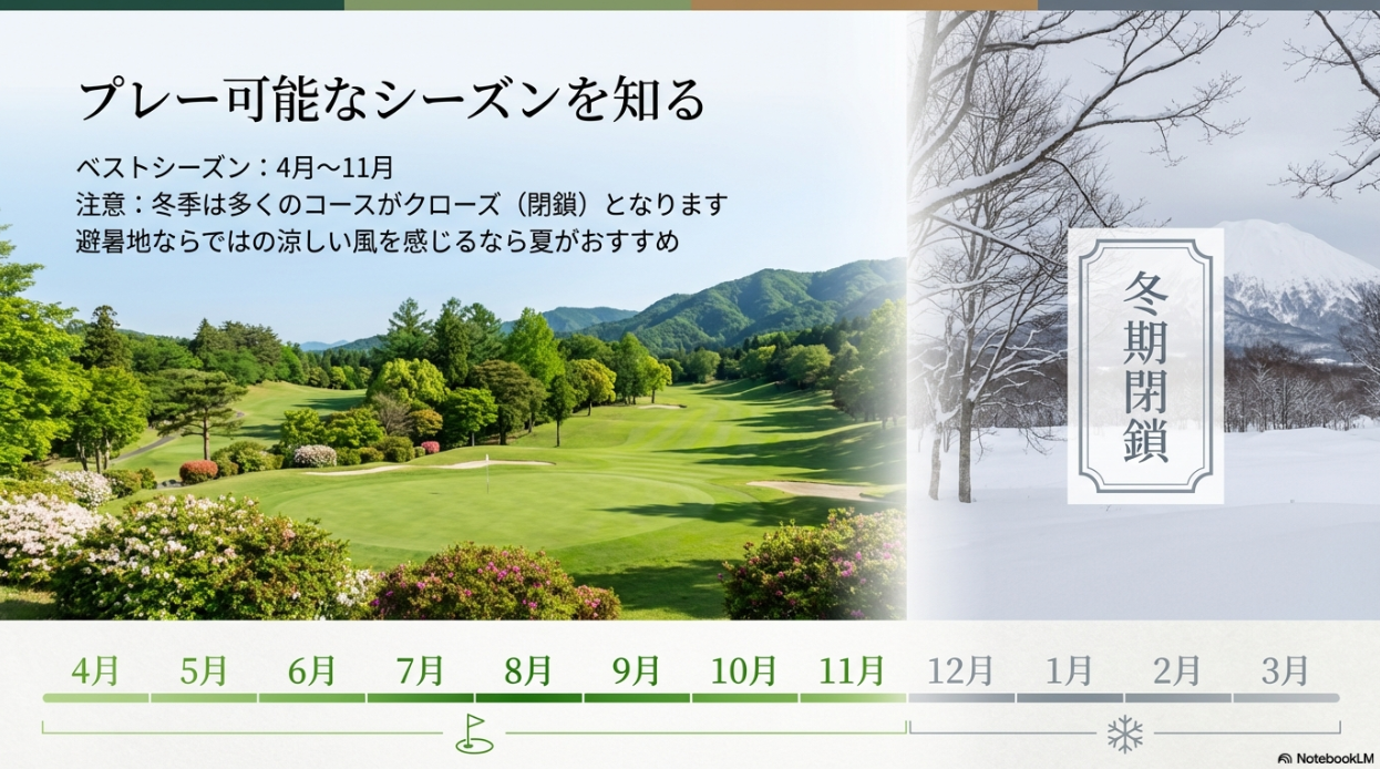 - 軽井沢のゴルフ営業期間と冬季クローズの注意点