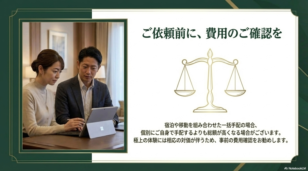 対象コース一覧は「使えるかどうか」の入口です。 実際に満足できるかは、日程、料金、同行者、現地までの移動まで含めて判断すると失敗しにくいです。