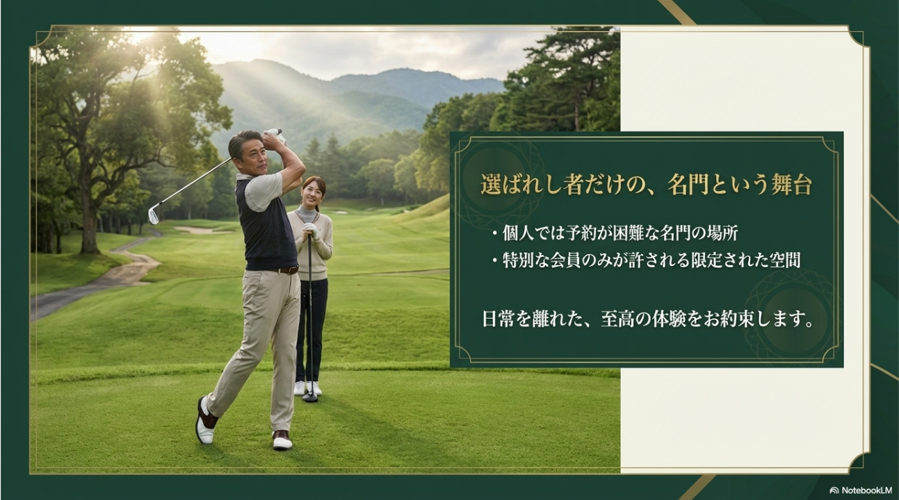 特に向いているのは、普段は取りやすいコースを中心に回りつつ、ときどき特別感のあるラウンドを入れたい人です。 記念日ゴルフや、長く付き合いのある取引先とのラウンド、あるいは自分へのご褒美としても使いやすいです。 毎回の予約のしやすさとは別軸で、「その日が特別になる」価値があるのは、イベント型特典ならではかなと思います。