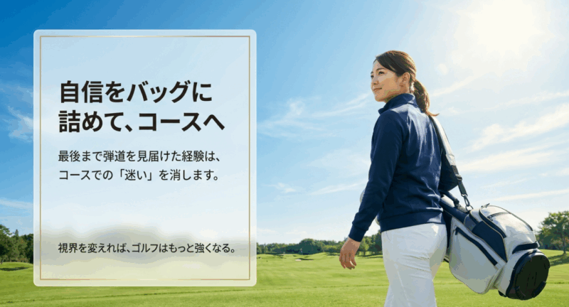ギアのテストも同じで、ヘッドやシャフトを変えたときに、初速は良いのに落ち際が弱いとか、スピンが多くて風に負けるとか、そういう違いが出ます。 広いレンジで「最後まで見える」状態だと、あなたの判断が早くなります。